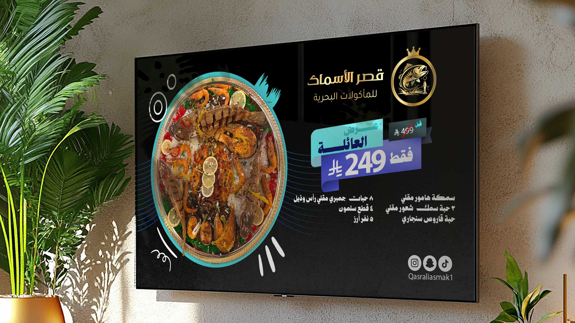ولتعزيز حضورك أكثر، نقدم تصاميم متكاملة من قوائم طعام رقمية جذابة وشاشات تفاعلية مبتكرة، إلى جانب محتوى بصري إعلاني يبرز منتجاتك وخدماتك باحترافية.